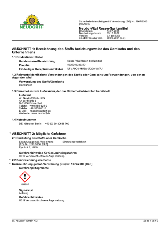 (4005240033319 Neudo-Vital Rosen-Spritzmittel SDS 2025-07 de-DE)