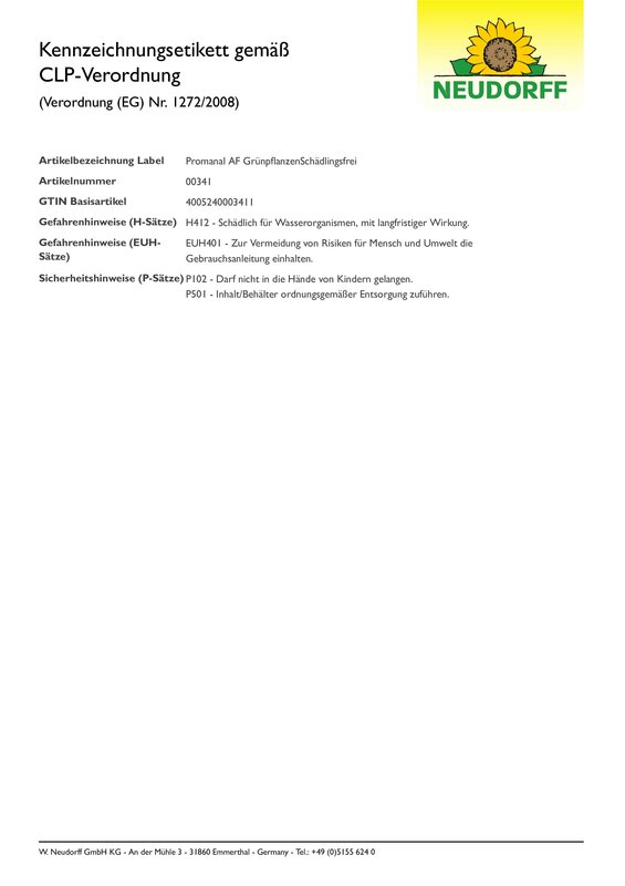 (4005240003381 Promanal Neu Schild- und Wolllausfrei CLP)