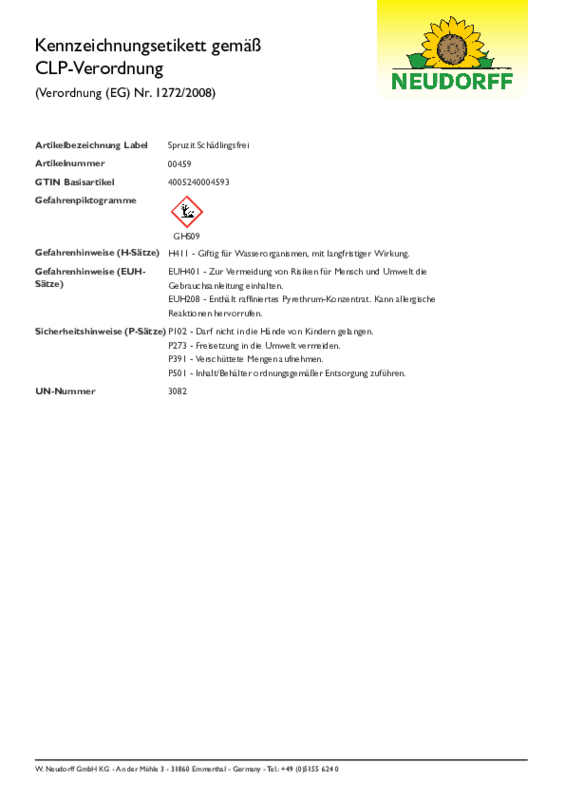 (4005240004593 Spruzit Schaedlingsfrei CLP)