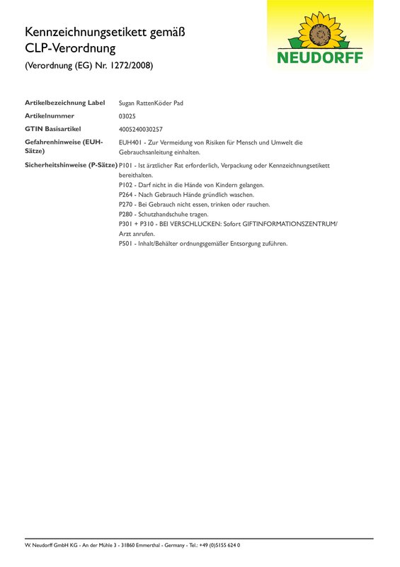 (4005240030257 Sugan RattenKoeder Pad CLP)