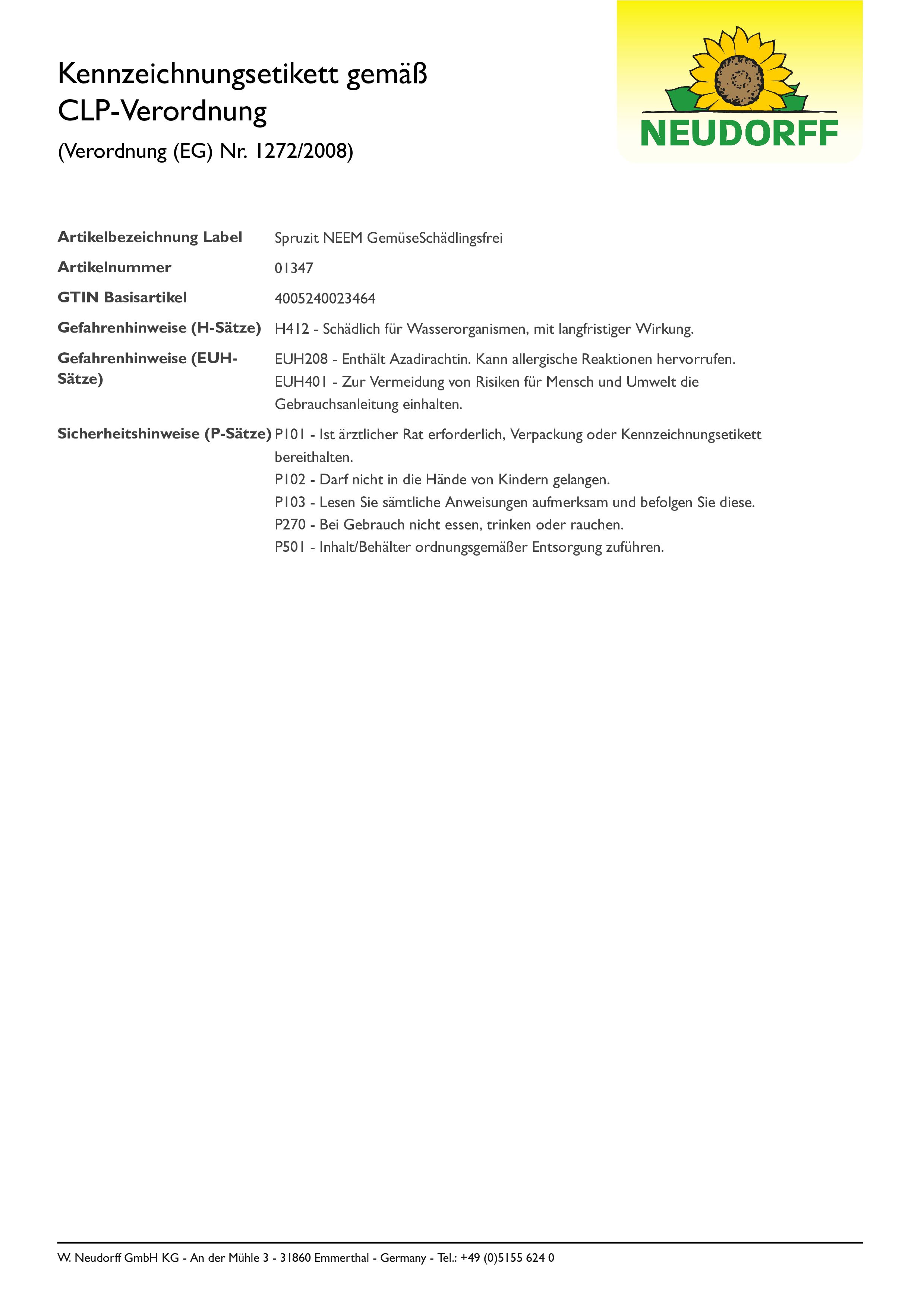 (4005240023464 Spruzit NEEM GemueseSchaedlingsfrei CLP)