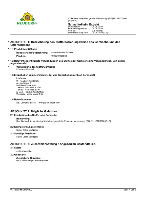 Schachtelhalm Extrakt Sicherheitsdatenblatt 2025-08 de-DE
